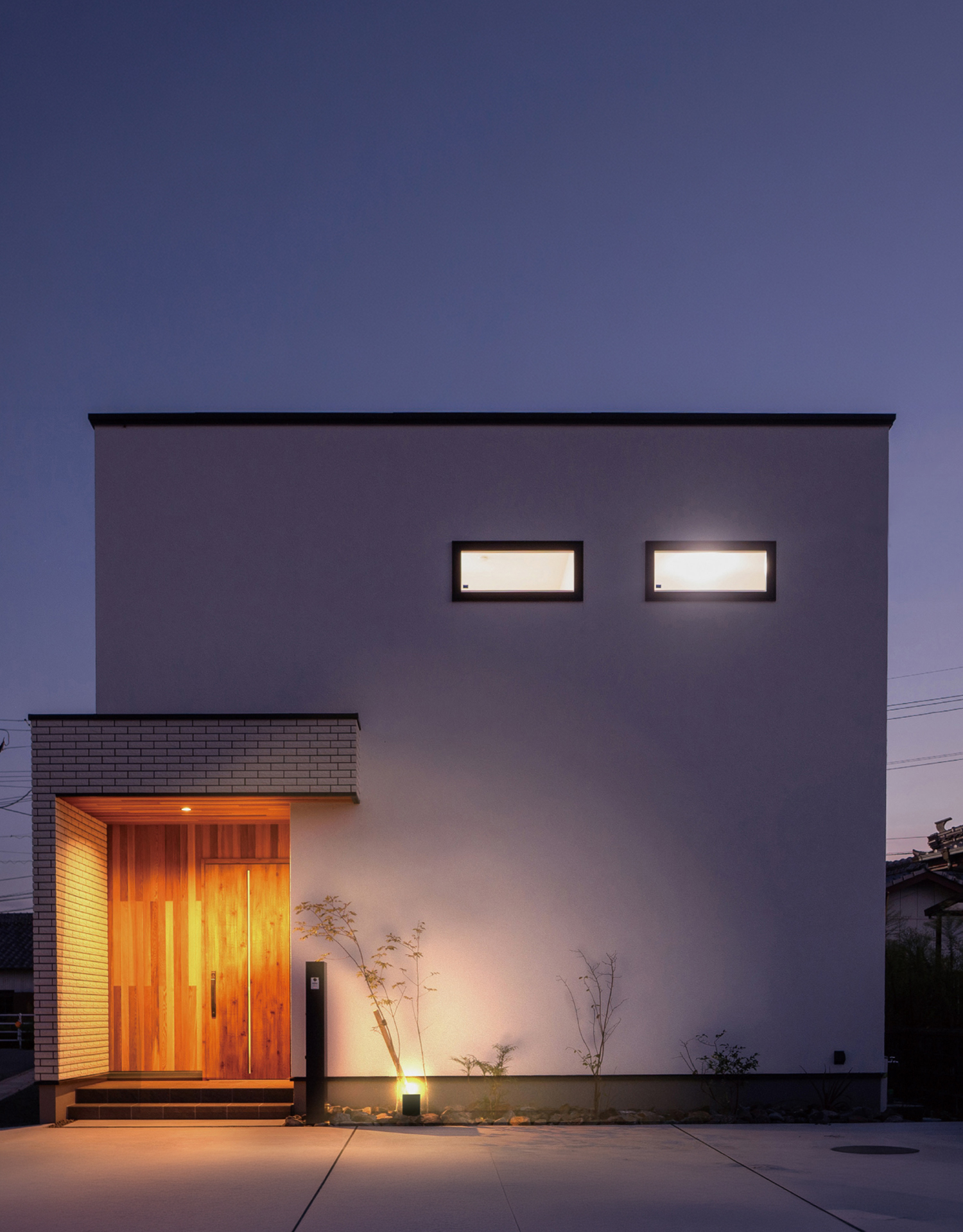 真四角の外観をベースに、タイルとレッドシダーを採用し、アクセントを持たせました。大きな吹き抜けと家事動線にこだわったお家に仕上げました。